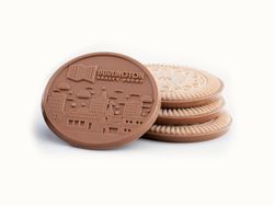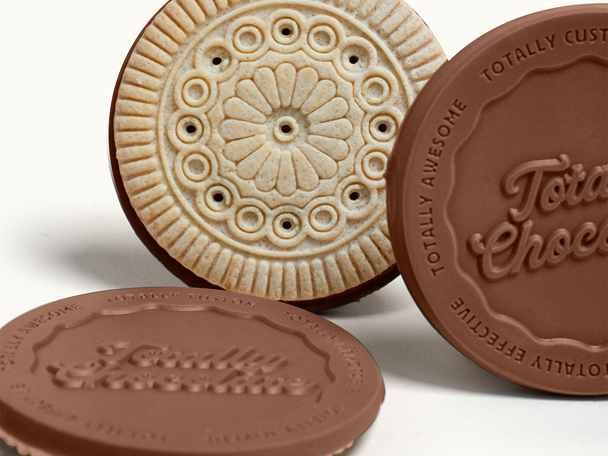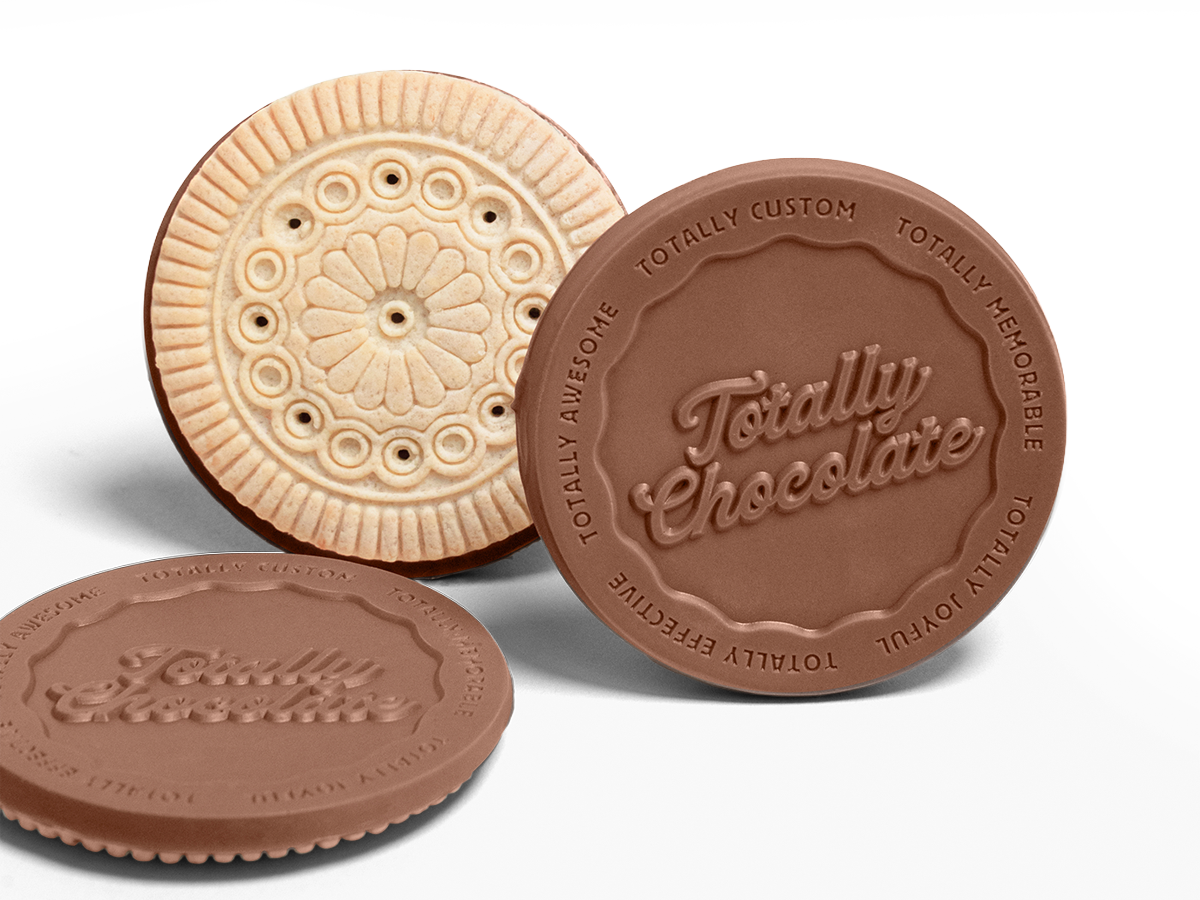 A best seller, this treat pairs a crisp vanilla sugar cookie with a smooth layer of milk, dark, or white chocolate engraved with your custom logo or design. It’s a delightful, memorable bite that turns every occasion into something special.